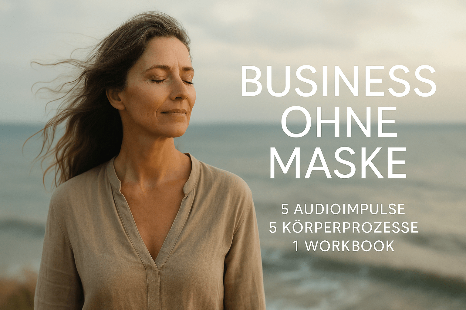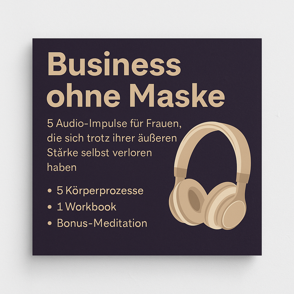 „Business ohne Maske“ ist ein 5-teiliges Audioformat mit begleitendem Workbook und Körperprozessen – speziell für Frauen, die im beruflichen Alltag stark auftreten, aber innerlich längst den Zugang zu ihrer eigenen Stimme verloren haben.